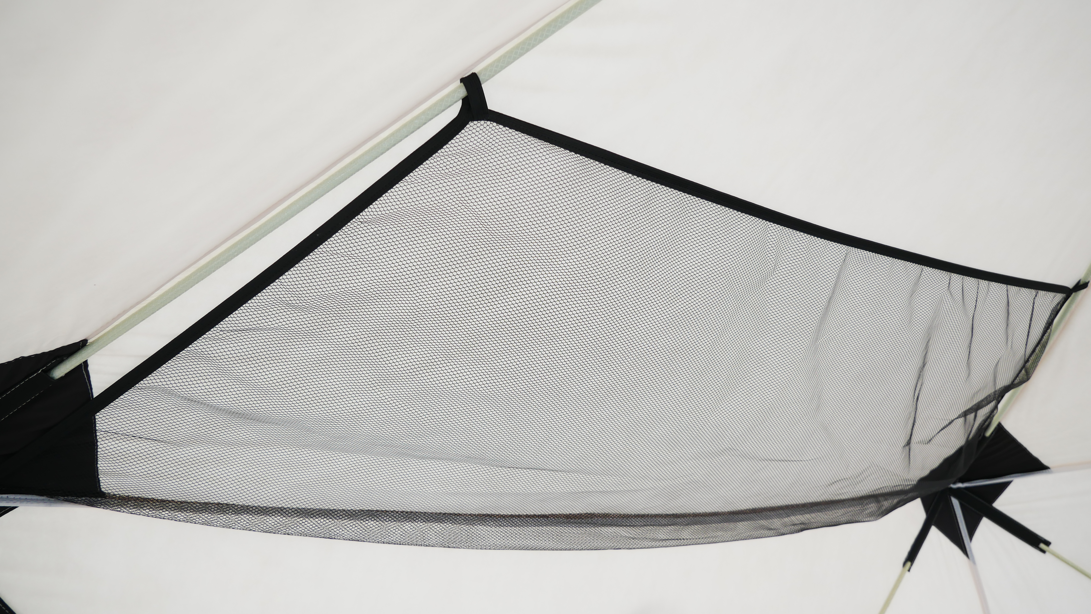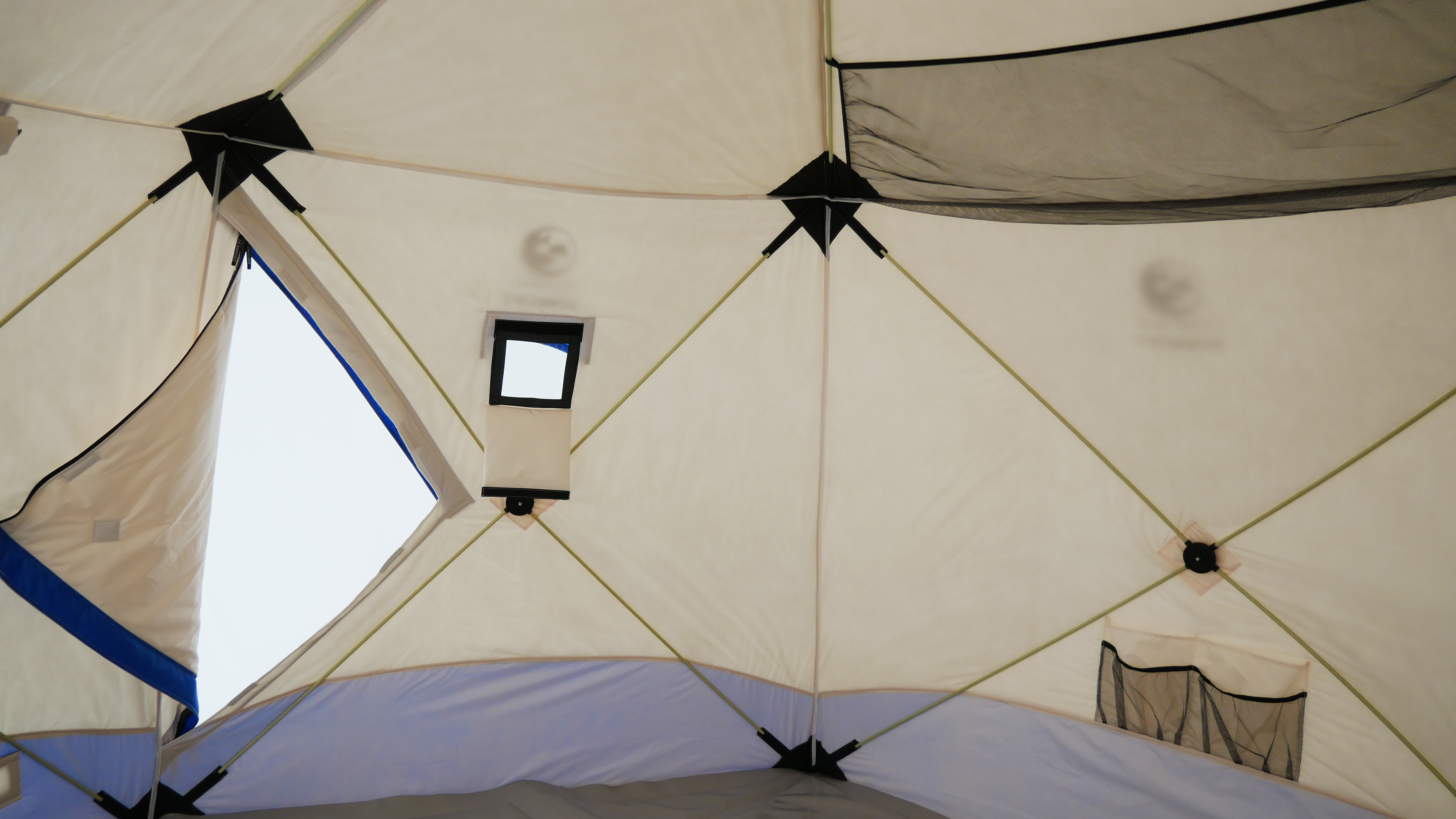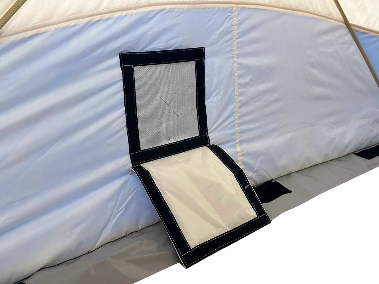 Палатка оснащена 1 входом с двухсторонним утеплением молнии и двумя двойными бегунками с пуллерами и оснащена системой проветривания.